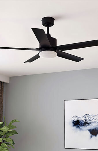 Professional installation of new ceiling fans in bedrooms, living areas, patios and offices, with options for standard designs, modern low-profile models, and custom mounting heights.